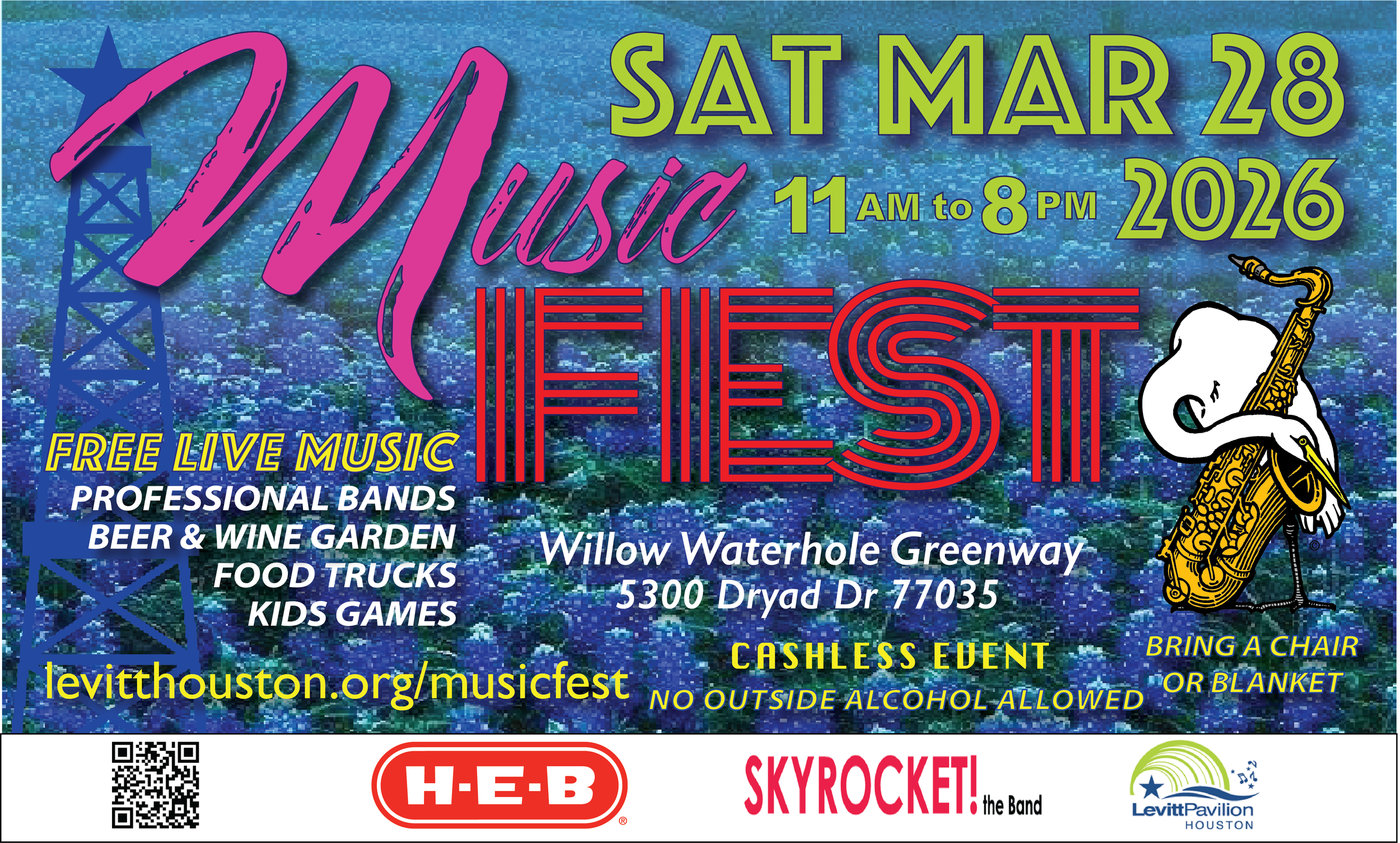 MusicFest is a Houston tradition that celebrates the power of live music to bring people together. For 13 years, it has filled Willow Waterhole Greenway with a full day of performances, food, and fun for families, neighbors, and music lovers from across the city.